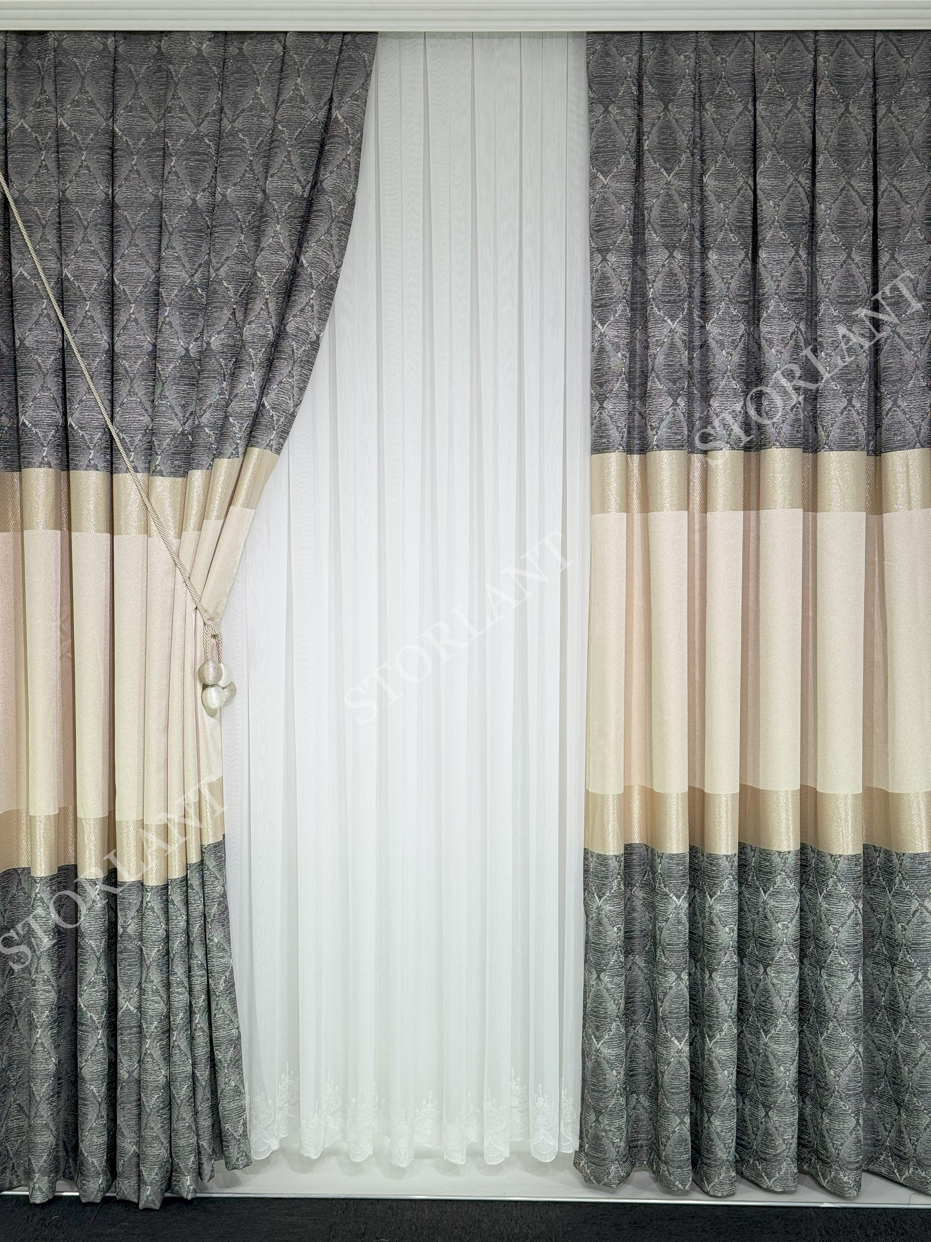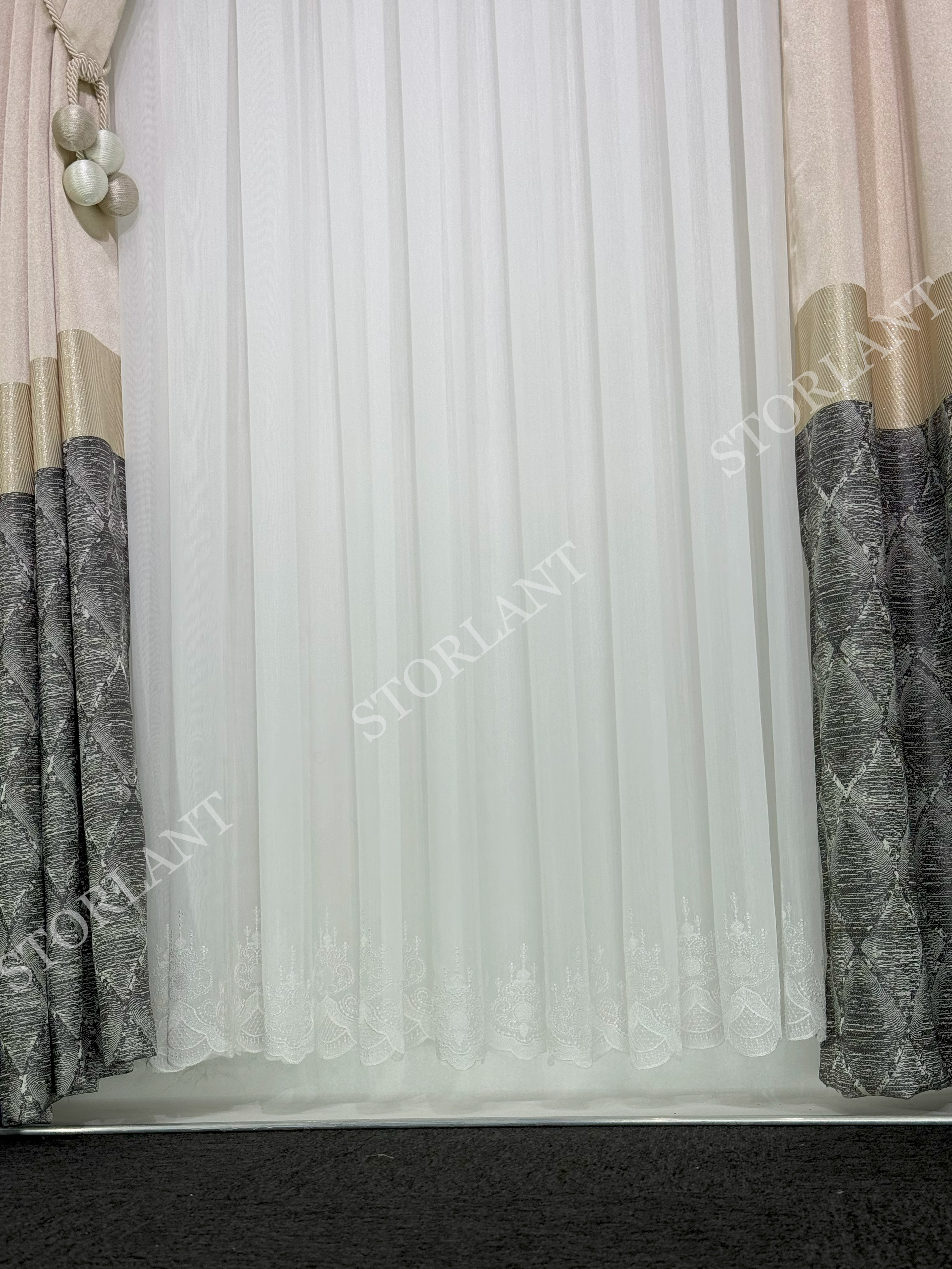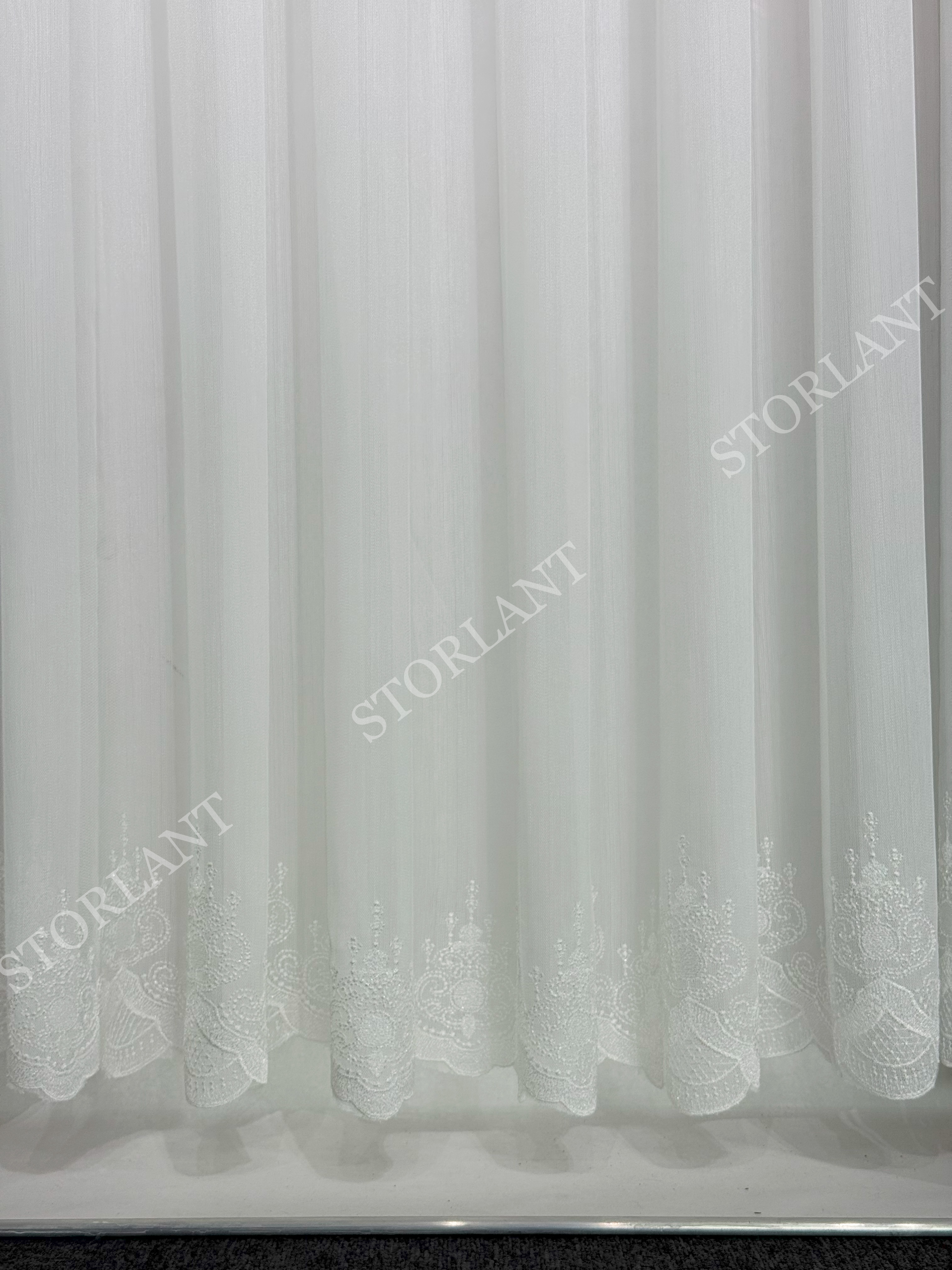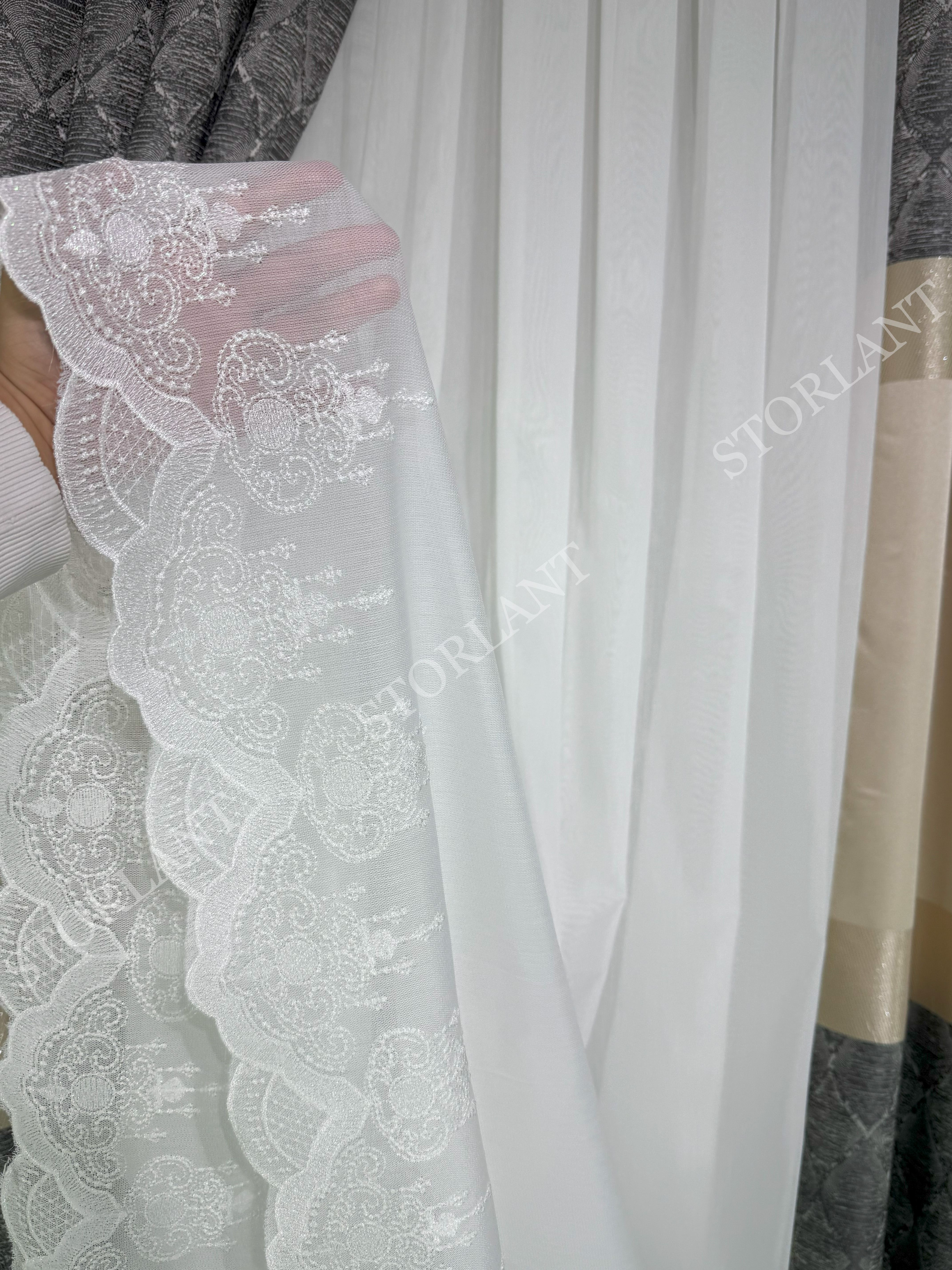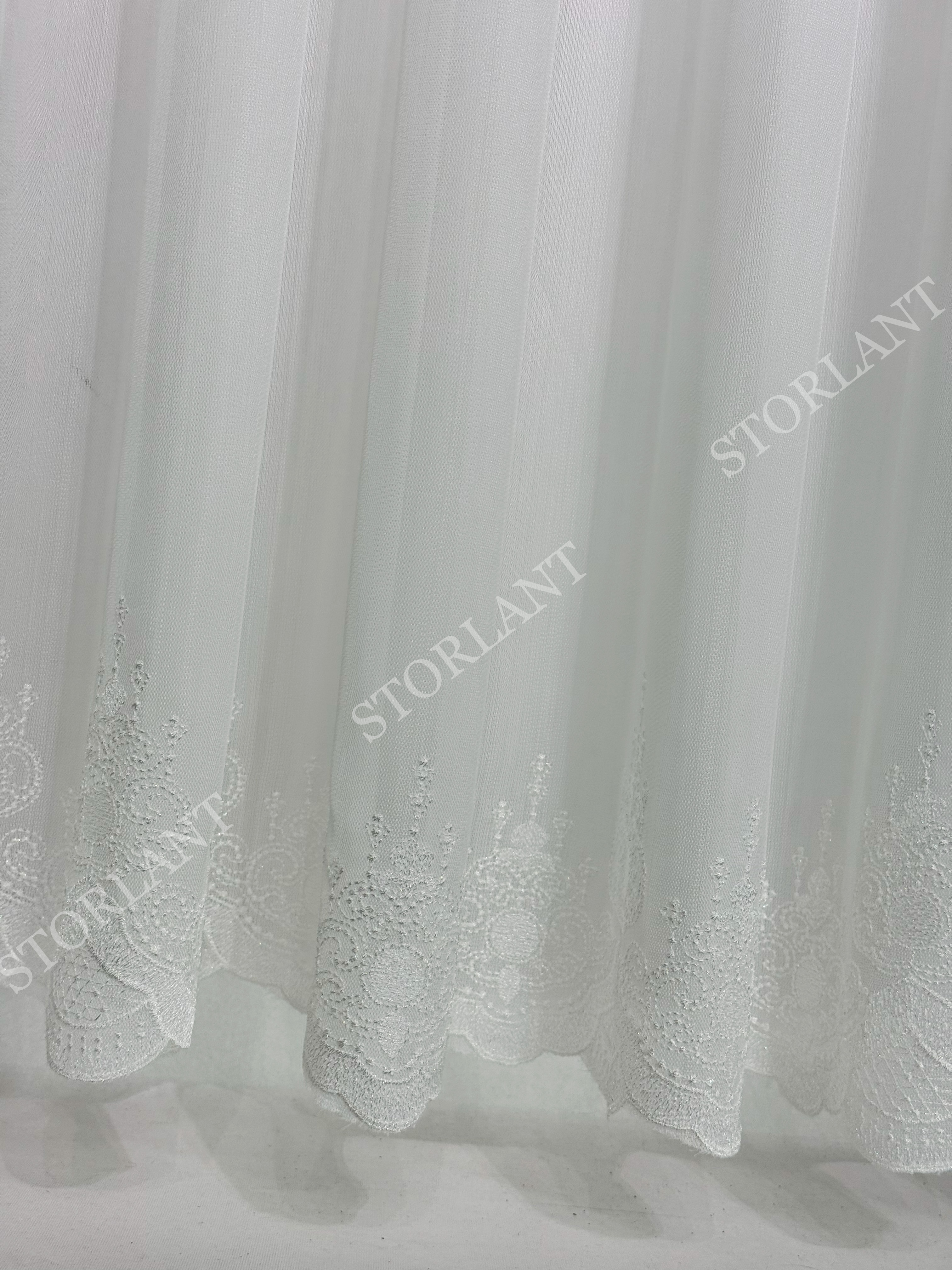 Klasik dantel işleme ve modern bambu dokunun birleşimiyle oluşturulan bu model, özellikle salon, oturma odası ve misafir odalarında sofistike bir görünüm sunar. 1/3 sık boru pileli formu ile dolgun durur, ütü gerektirmeden formunu korur.