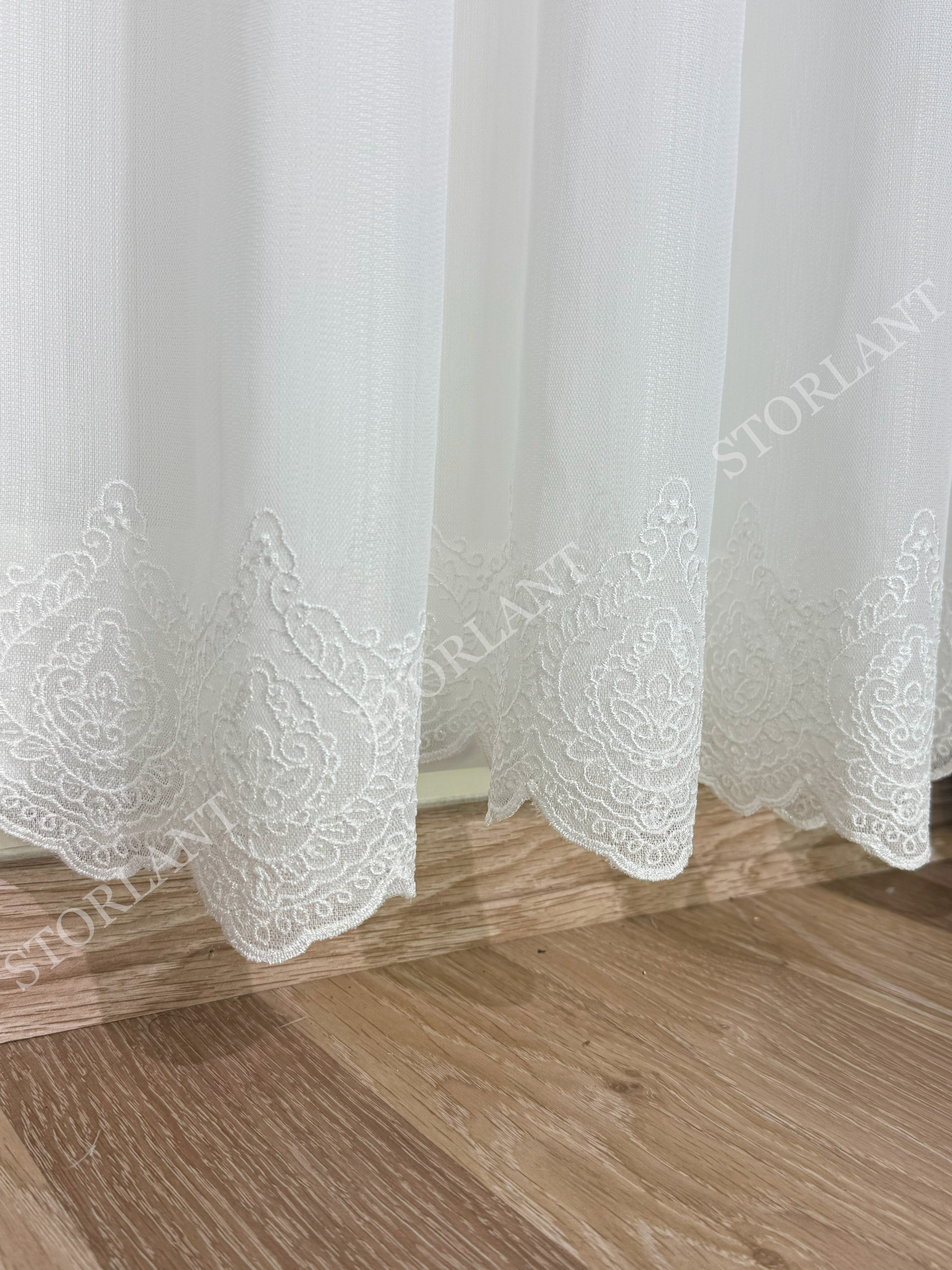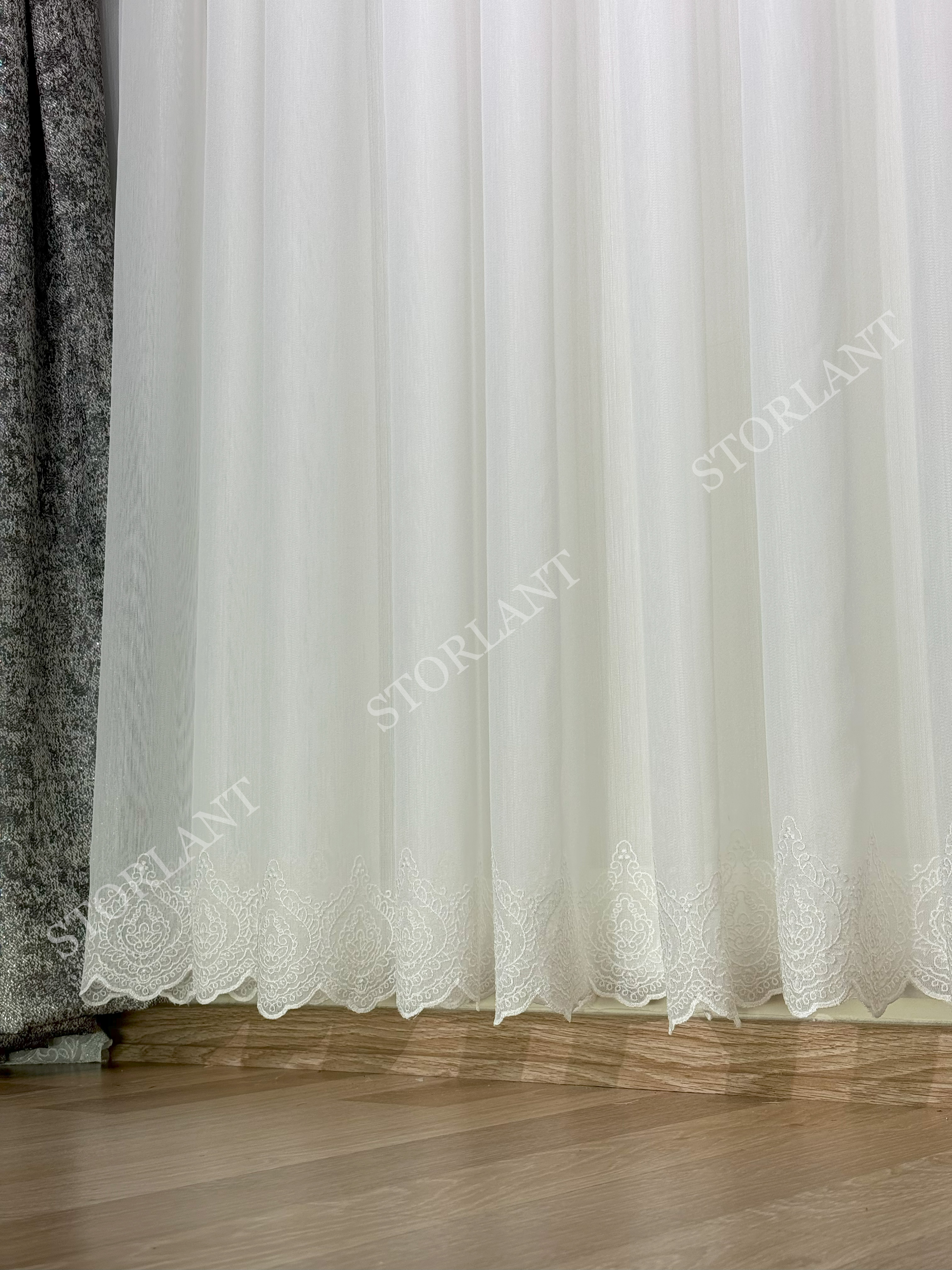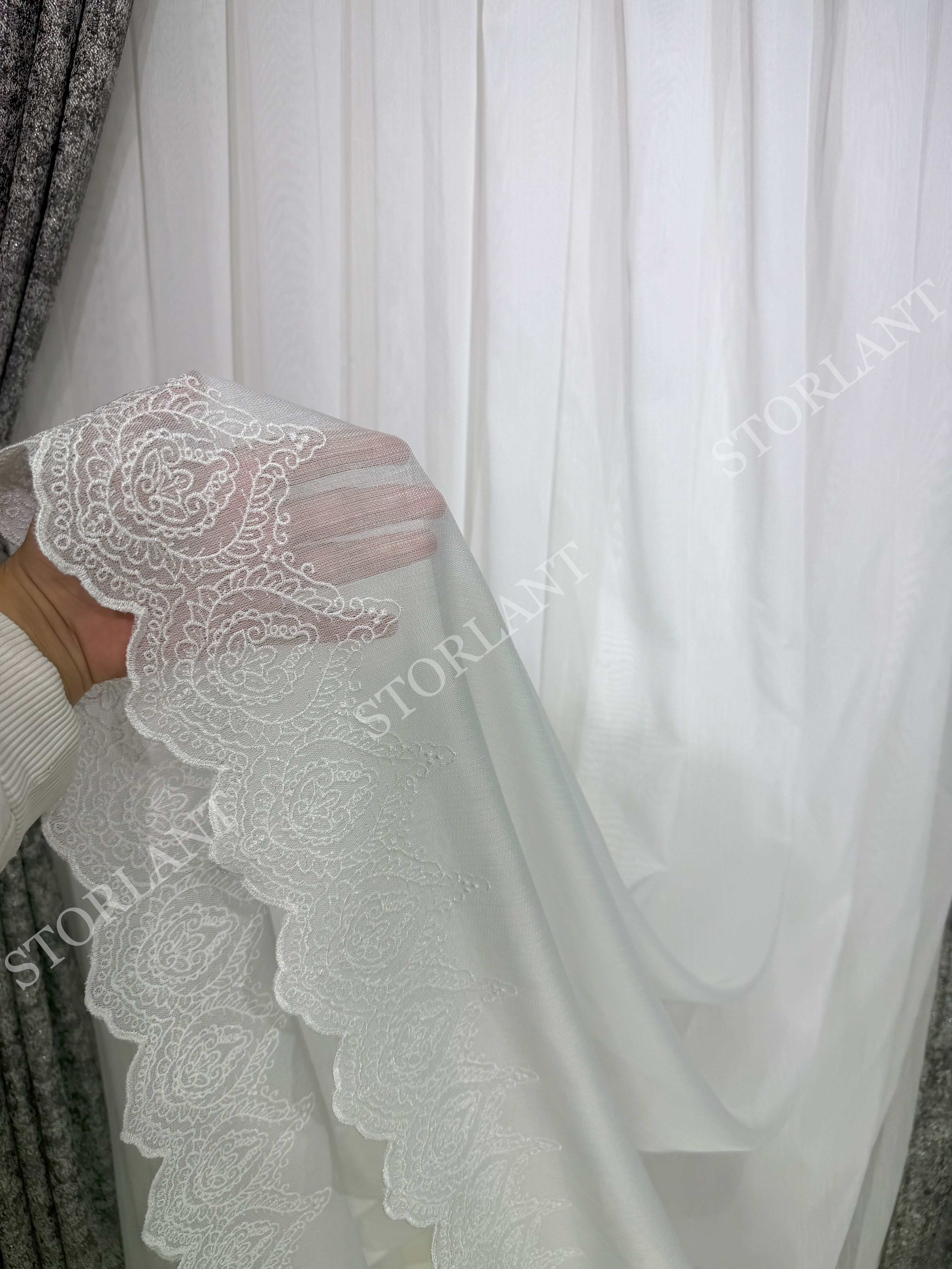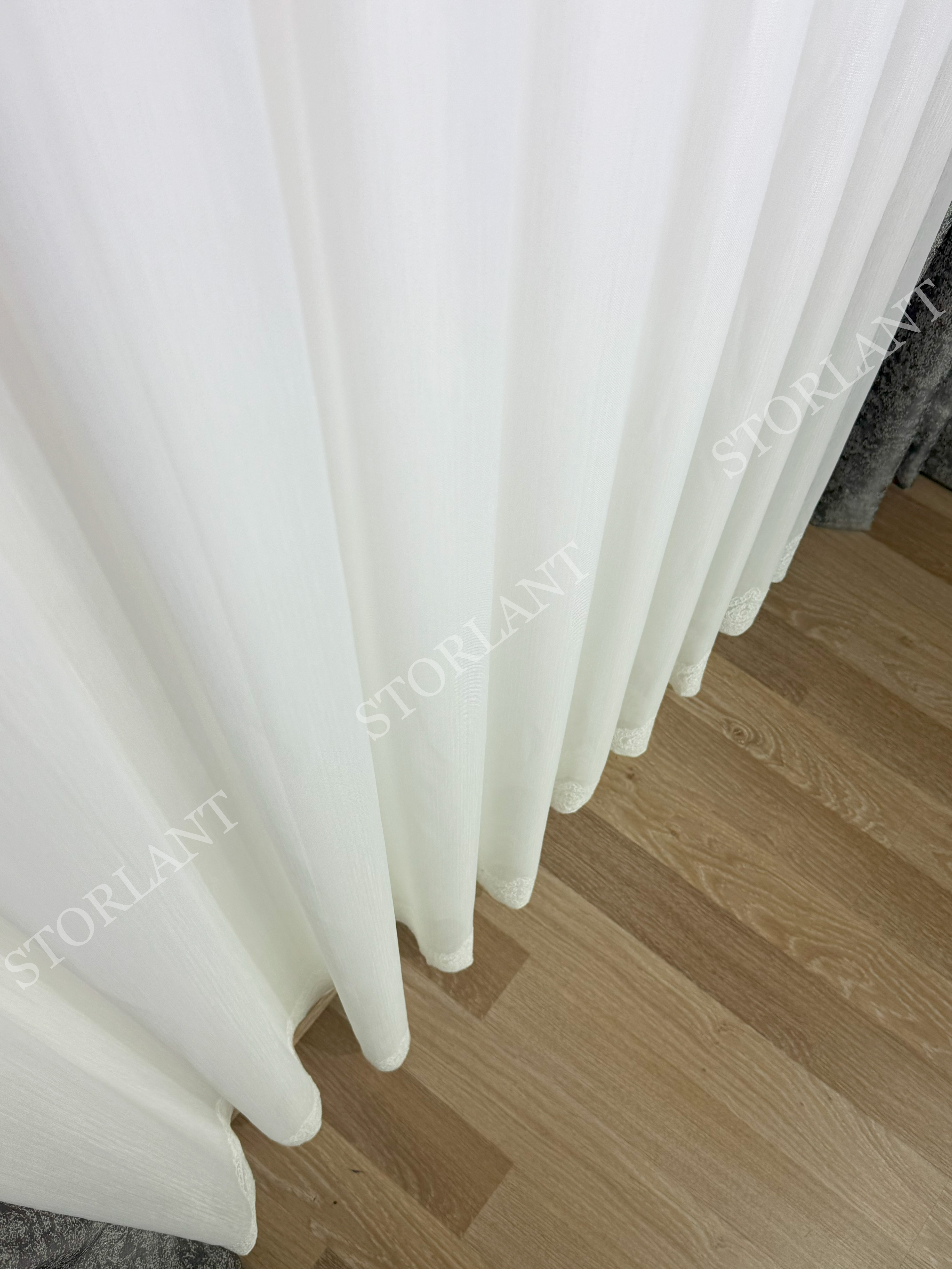 Diora Etek Bambu Tül Perde | Dantel Etek İşlemeli, Ağır Gramajlı, 1/3 Sık Pileli, Ütü Gerektirmez
