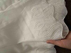 Tülün kalınlığı olsun kumaşı olsun harika çok kaliteli gerçekten görselden de anlaşılıyor kalitesi. Krem gibi çıkmış çektiğim görselde ama beyaz içiniz ferah bir şekilde alabilirsiniz