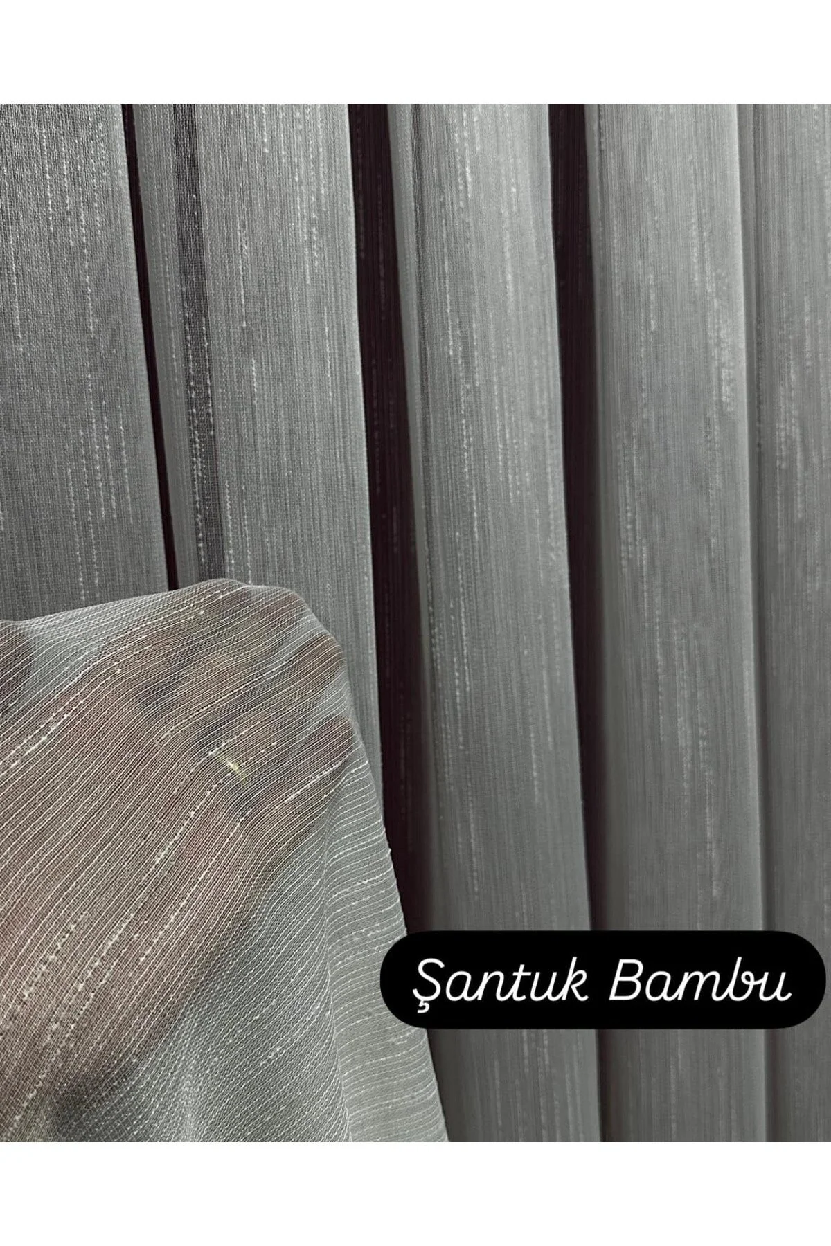 Şantuklu Bambu Tül Perde, özel dokuma bambu efektli yüzeyi ve şantuk detayları ile doğal şıklığı evinize taşıyor. Kırık beyaz zemin rengiyle her dekorasyona uyum sağlayan bu model, ince yapısıyla zarif ve sade bir görünüm sunar. Tülüm doğal görünsün ve aynı zamanda zarif dursun diyenler için ideal bir tercihtir.